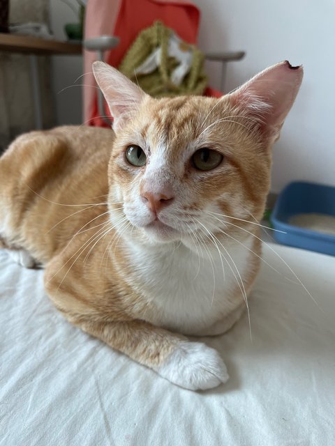Cornbread is a sweet and chill dude with a croaky meow. He loves basking in the sunshine and making biscuits.