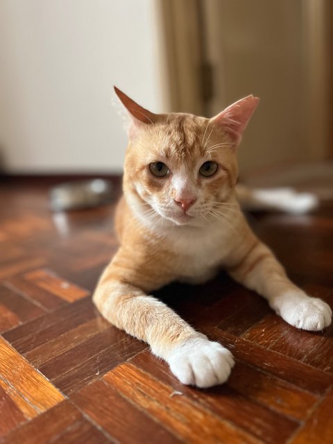 Cornbread is a sweet and chill dude with a croaky meow. He loves basking in the sunshine and making biscuits.